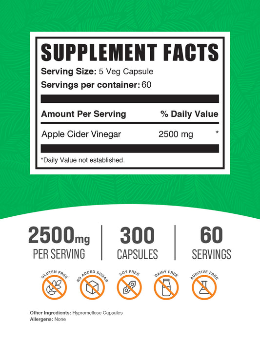 Apple Cider Vinegar Capsules - 2500Mg per Serving (300 Capsules - 60 Servings)